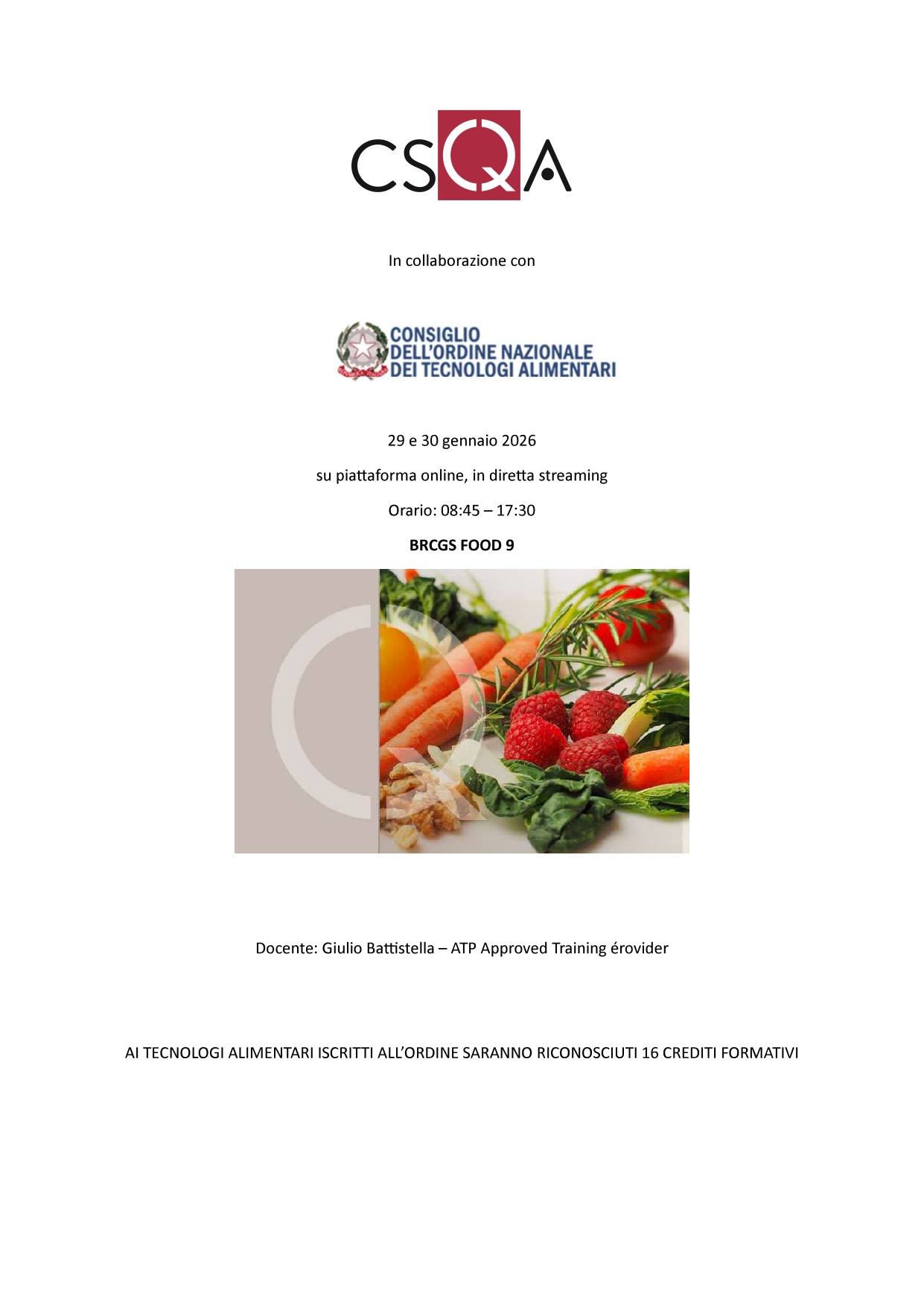 Per iscriversi accedere al seguente link: CSQA - BRCGS FOOD 9