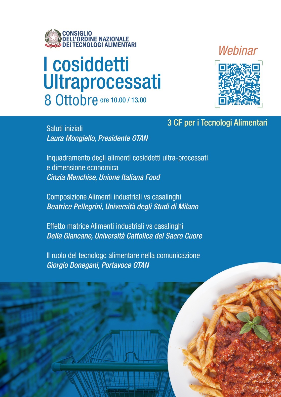 L’incontro di formazione approfondirà il tema sempre più pressante degli alimenti ultra-processati. Se ne analizzeranno l’inquadramento e l’impatto economico, nonché la composizione e l’effetto matrice nel confronto con gli alimenti casalinghi. Sarà inoltre affrontato il ruolo del tecnologo alimentare nella corretta comunicazione scientifica verso consumatori e professionisti. La frequenza dà diritto e 3 crediti formativi.
